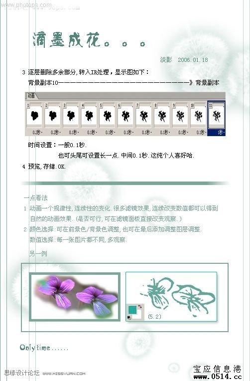 今天我们先容一篇photoshop滤镜教程,作者巧妙的用滤镜效果的变化制作出滴墨成花的动画效果.我们可以在把握了思路的基础上对滤镜进行各种变化,做出很多漂亮的效果出来.