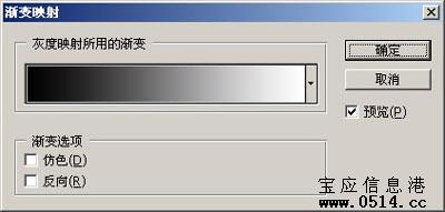 而渐变映射中是把相等的图象灰度范围映射到指定的渐变填充色,实在这儿说的灰度范围映射,就是指不同的明度执行映射。