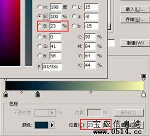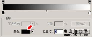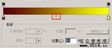 渐变两个色标点之间都会有一“色彩中点”,如下图,是用来控制渐变量的大小的,可移动“色彩中点”,向两个色标点接近,或在“地方”处键入设定值执行控制。