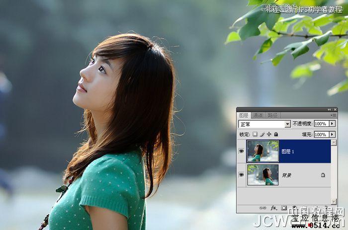 使用Photoshop打开素材相片,过程1,复制出一与原图左右相反的新图层。