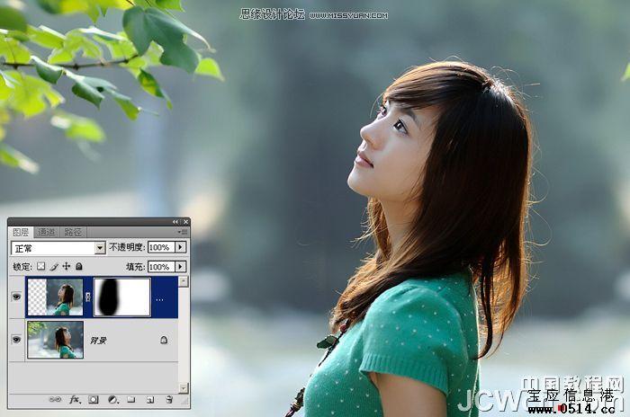 过程3,按D键,将远景色和背景色分别设置为白和黑,按X键将远景色和背景色互换,这样我们就将远景色设置为了玄色。按B键将当前工具转换为画笔,在蒙版上图像明显的边沿处涂抹,可将边沿擦为半透明,上下图层很好地融合在一起。我们的修改工作就结束了,如图四。这一步工作4秒可解决题目。最后按下Ctrl+Shift+S将图像另存为JPG格式即可,假如想在以后运行深入修改,可使用Ctrl+S,保存为PSD文档,固然文件大了点,但图像质量没有损失。