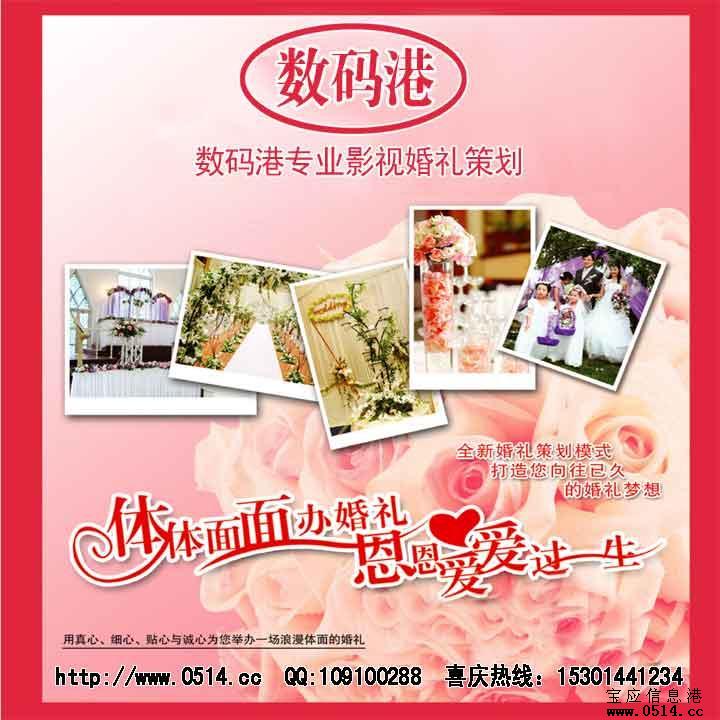 素称“中国荷藕之乡”的宝应,历史悠久,风光秀美, 宝应县数码港影视传媒公司就根植在这片神奇而瑰丽的土地上。数码港影视传媒公司是宝应地区最专业的礼仪、策划团体。数码港拥有一支富有高素质专业知识和经验的艺术策划和管理的人才团队。作为宝应最专业礼仪团队,艺术团演出阵容整齐,拥有多名优秀的专业主持人、具有国家专业技术职称的演职员、专业舞美设计、专业音响师、专业灯光师以及专业摄像(影)师。数码港专业团队承办过各类经典中西式婚庆、盛大奠基礼仪以及晚会演出等。诚信、严谨、专业、创新是数码港影视传媒公司的经营理念,我们注重各类演出过程中的每一个细节,努力进取,不断改革创新,打造精良,成为闻名遐迩的婚庆礼仪行业的领航者。这里有浪漫之情,这里有激情之声,这里有天籁之音,这里有曼妙之舞,这里——数码港影视传媒公司,一个充溢着艺术氛围的大舞台,一个将普通婚礼上升为艺术品策划团体。独特的经营理念和超优的服务特色,时尚、个性、更具感染力的婚礼,是数码港影视传媒公司一贯的不懈追求。数码港影视传媒公司为每一对新人量身定制独具创意的个性化婚礼,让待嫁新娘的夙愿梦想成真,让瞬间的记忆成为一生的永恒